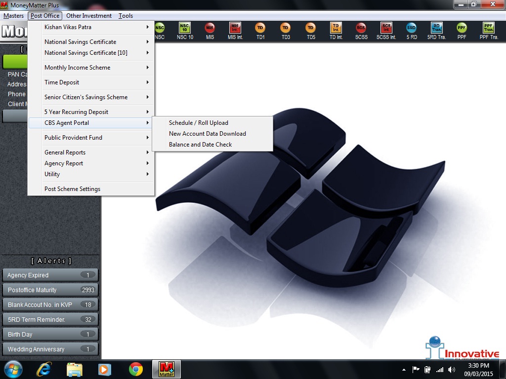 MONEYMATTER PLUS SOFTWARE CAN BE USED BY MPKBY/SAS/PPF POST OFFICE AGENT HAVING AUTHORISED POST OFFICE AGENCY.